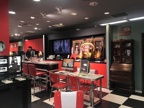 ジュークボックスやギター、ドラムなどをディスプレイしており